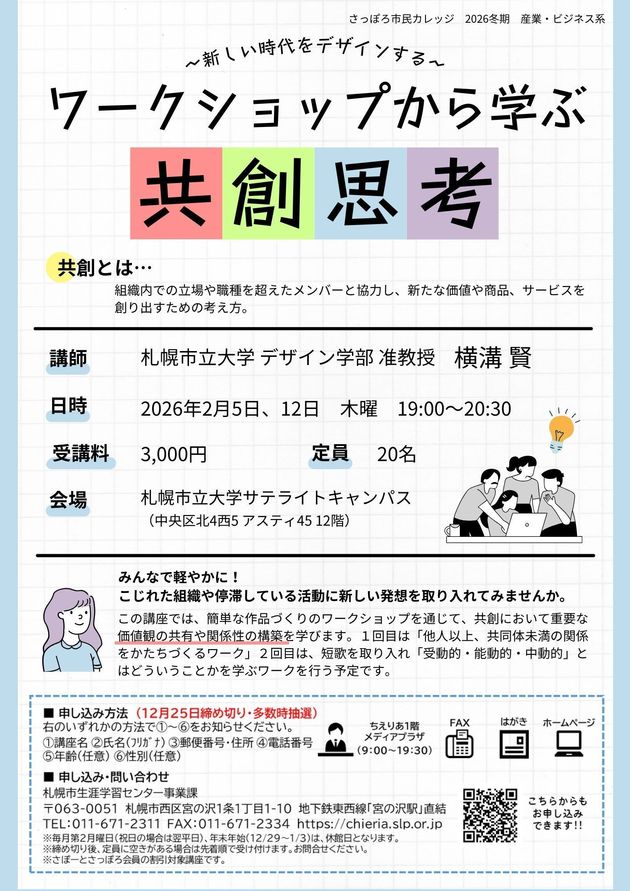 ※タイトルに「☆」がついているものは、さぽーとさっぽろ会員の割引対象講座です。